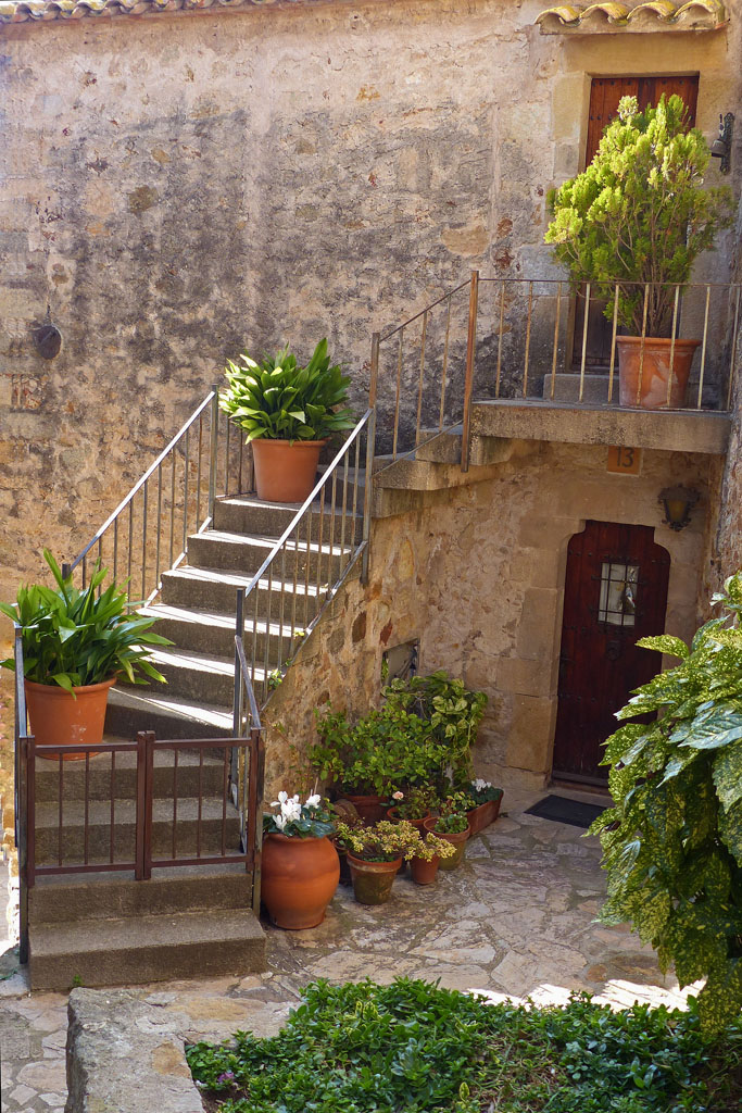 Pals est un village médiéval situé sur un éperon rocheux, alors, inévitablement il y a des montées et des escaliers, beaucoup d'escaliers, qu'ils soient juste de quelques marches ou correspondent à un étage entier... Alors, même si il est fort joli, si vous avez des difficultés de locomotion ou que vous avez de jeunes enfants en poussette, autant l'oublier... ou, pour ce qui est du second cas, vous dire que vous le visiterez lorsqu'ils seront plus grands et que pour eux, galoper le long des ruelles, tandis que vous flâner tranquillement, sera devenu un vrai plaisir.